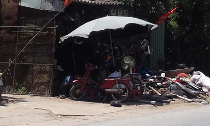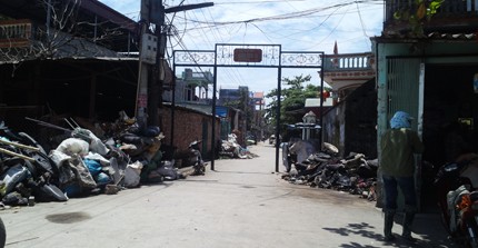 Đi dọc đường dẫn vào làng, chúng tôi như lạc vào bãi xác xe khổng lồ với không biết cơ man nào là xe máy. Hầu hết, chúng được mổ bung ra, khung nằm đường khung, lốp nằm đường lốp… lấn ra cả lối đi.