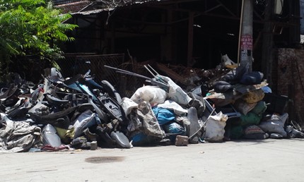 Những xác xe được chất đống lãn ra cả đường đi Ảnh: Quang Thành
