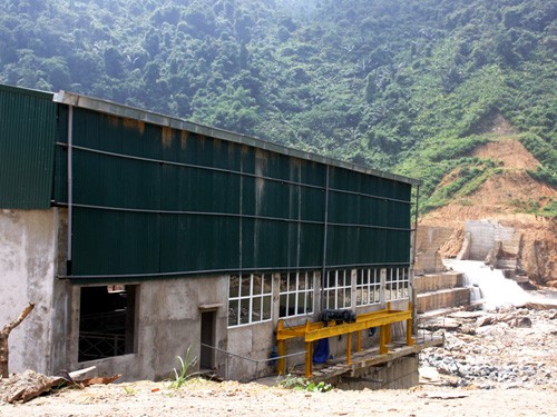 Một góc Nhà máy thủy điện Đakrông 3 và phần thân đập bị vỡ. Ảnh chụp trưa 14.10 - Ảnh: Nguyễn Phúc