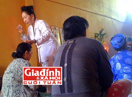 Tới lượt mình, tôi vào vai một người bệnh mất ngủ, sức khỏe sa sút. "Cô Hai" lập tức bảo phải uống thuốc đặc trị. Xong, cô bắt tôi uống hết ly nước đầy, thì ra cũng chỉ là nước trắng bình thường, không có mùi vị gì cả. Sau đó cô bảo tôi ngồi thẳng lưng, chắp hai tay lại rồi bắt đầu… niệm chú. Cô nói một tràng dài không đầu không đuôi, không rõ nghĩa: "Mời, mời tất cả các quý vị chu di. Nếu quý vị sống thì tu phần xác, thác hôm nay quý vị tìm tu phần hồn. Quý vị dẫn xác về tới đây tìm đường tu, quý vị chuyển xác vô để cho biết mình ở đâu, để tìm đường tu ở đây thì cái xác này sẽ ủng hộ, nuôi cho quý vị ăn học thành tài để sau này quý vị trở về cứu nhân độ thế…".