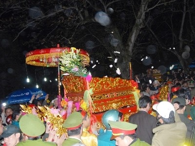 Chen lấn xô đẩy ném tiền may mắn vào kiệu ấn tại hội đền Trần 2012. Ảnh: Minh Đức.