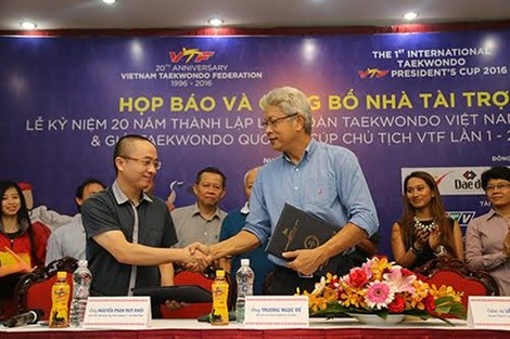 TP. Hồ Chí Minh ngày 9/12/2016 diễn ra họp báo giới thiệu Lễ kỷ niệm 20 năm Ngày thành lập Liên đoàn Taekwondo Việt Nam (1996 – 2016), Giải Taekwondo Quốc tế Cúp Chủ tịch VTF lần 1 – 2016 và Giải Vô địch Taekwondo đồng đội Cup VTF lần 1 - 2016.