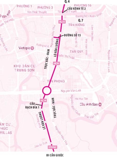 Theo Sở GTVT TP, các khu dân cư đô thị trên địa bàn huyện Nhà Bè, quận 7 phát triển rất nhanh, đặc biệt là khu đô thị cảng Hiệp Phước. Do đó, đường trục Bắc-Nam đoạn từ Hoàng Diệu đến Nguyễn Văn Linh dài gần 3,8 km hiện thường diễn ra ùn tắc giao thông, đặc biệt là tại cầu Kênh Tẻ nằm trên đoạn đường này. Vì vậy, TP.HCM kiến nghị Thủ tướng được sớm mở rộng đoạn này lên 40-60 m (8-10 làn xe) với tổng vốn đầu tư dự kiến 5.430 tỉ đồng.