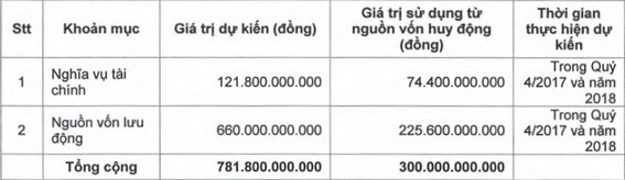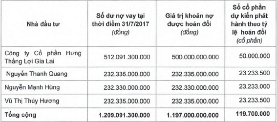 Với phương án phát hành riêng lẻ 119,7 triệu cổ phiếu hoán đổi nợ, dựa trên mức công nợ vay tại thời điểm 31/7/2017, phương án phát hành được Công ty công bố trước đó trong tờ trình. Thời gian thực hiện chào bán sẽ trong năm 2017.