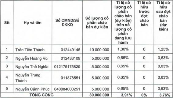 Danh sách chào bán cổ phần HNG