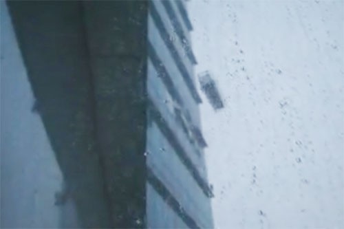 Trời đang mưa, gió giật rất mạnh và chiếc lồng sắt cứ trôi ra xa hàng chục mét lại đập mạnh vào tầng 23 của tòa nhà. Khoảng cách va đập có khi lên đến hàng chục mét vì chiếc "lồng sắt" được thả từ nóc trên tầng 72 xuống.