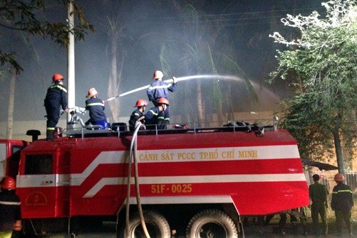 Một đám cháy lớn đã xảy ra tại Công ty TNHH Quốc tế Hoàng Việt chuyên sản xuất bông vải sợi, nằm trong Khu chế xuất Tân Thuận (TP Hồ Chí Minh).