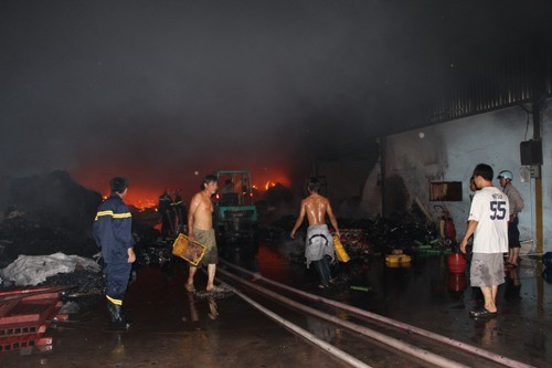 Khoảng 22 giờ, lửa bùng lên từ kho hàng chứa phế liệu và nhanh chóng bốc cao ngùn ngụt trong toàn bộ khu nhà xưởng và khuôn viên. Nhận được tin báo, hơn 30 lính cứu hỏa và 4 xe chữa cháy đã đến hiện trường.