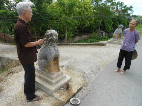 Cặp chó đá đứng ngay đầu làng thuộc xã Viên Nội (Ứng Hòa, Hà Nội)