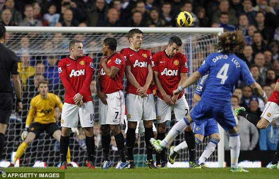 Không còn cách nào khác, Chelsea buộc phải dồn đội hình lên để tấn công. Phút 24, The Blues được hưởng quả đá phạt ở cự ly chừng gần 30m. Và David Luiz đã thực hiện cú đá uy lực khiến David De Gea phải dùng chân để cứu thua cho M.U.