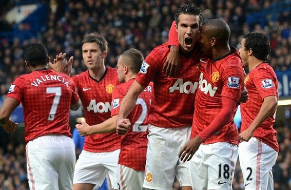 Tuy nhiên, số ít các CĐV của M.U có mặt tại sân Stamford Bridge không phải chờ đợi lâu để có cơ hội ăn mừng bàn thắng. Phút thứ 4, Rooney căng ngang đúng tầm vào trong vòng cấm cho Van Persie băng lên sút bóng dội xà ngang rồi đập trúng người David Luiz đi thẳng vào lưới trong sự bất lực của Petr Cech.