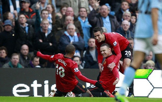 Nhưng trong lịch sử Premier League, M.U chưa bao giờ bại trận sau khi dẫn trước 2 bàn, và vẫn chưa đội bóng nào có thể thay đổi điều ấy. Chơi khá thầm lặng từ đầu trận so với người đá cặp Rooney, nhưng van Persie đã sắm vai người hùng với bàn quyết định ở phút bù giờ thứ ba. Cú sút phạt trực tiếp của tiền đạo người Hà Lan đã chạm vào chân Nasri và đi cực kỳ hiểm hóc vào góc xa. Sau bàn thắng ấy, một hình ảnh xấu đã diễn ra khi Rio Ferdinand bị các fan chủ nhà ném vật lạ chảy máu mặt. Chắc chắn Man City sẽ đối mặt với án phạt nghiêm khắc từ phía FA.