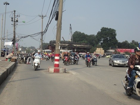 Mỗi đoạn đường được mở rộng là những cây cột điện nằm ngay giữa lòng đường, nên mỗi lần đi qua đây mọi phương tiện như vượt qua "chướng ngại vật" người tham gia giao thông phải liên tục lạng lách, đánh võng để tránh xảy ra va chạm.