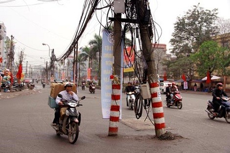 Giữa lòng đường vẫn trơ lại hàng trăm cột điện, cột nào cũng chằng chịt dây bao quanh, lại còn thêm những bảng quảng cáo được treo lơ lửng trên cây. Không những thế còn làm mất mỹ quan đô thị và không đảm bảo an toàn cho người tham gia giao thông.