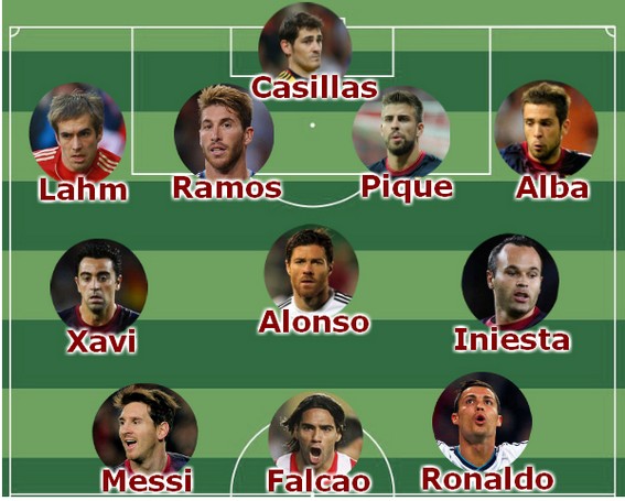 Cách đây hơn 1 tháng, LĐBĐ thế giới (FIFA) đã công bố danh sách 55 cầu thủ đề cử cho đội hình tiêu biểu năm 2012. Từ bản danh sách này, NHM bóng đá thế giới sẽ bình chọn ra 11 gương mặt xuất sắc nhất. Còn tại Tây Ban Nha, trong cuộc khảo sát được tổ chức bởi Marca, đội hình tiêu biểu đã lộ diện.