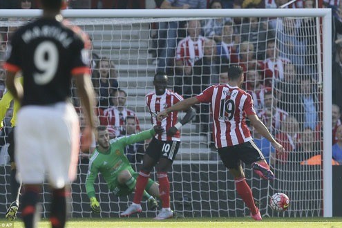 Bàn thắng sớm giúp Southampton thi đấu tự tin hơn, đặc biệt là mũi nhọn Graziano Pelle liên tục khiến khung thành của De Gea chao đảo. Phút 16, Pelle suýt nhân đôi cách biệt cho đội chủ nhà nếu cú sút không đi trúng cột dọc.