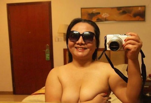 Mẹ Can Lộ Lộ một tay che ngực, một tay cầm máy ảnh, tươi cười chụp nude khoe thân