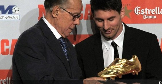 Leo Messi đoạt Chiếc giày vàng nhờ ghi 50 bàn thắng ở La Liga 2011/12. Năm 2010 ngôi sao Argentina từng đoạt danh hiệu này với 34 pha lập công ở giải VĐQG TBN.