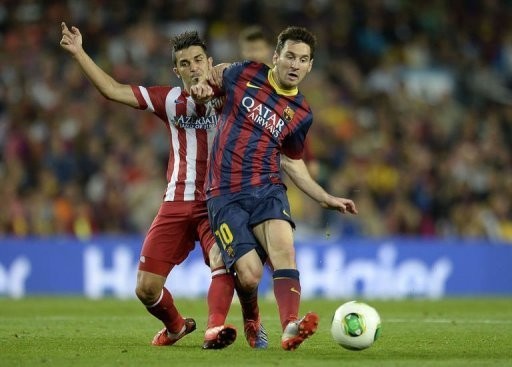 Messi tranh bóng với David Villa trong trận Siêu Cúp lượt về. (Nguồn: AFP)