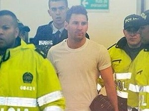 Mặc dù đến thành phố Medellin của Colombia vào lúc bốn giờ sáng trong điều kiện thời tiết xấu, siêu sao bóng đá người Argentina, Lionel Messi, vẫn được 10 nhân viên an ninh bảo vệ xung quanh như một nguyên thủ quốc gia.
