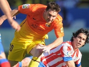 Messi dính chấn thương ở trận đấu với Atletico. Nguồn: AFP