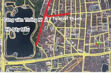 Tuyến đường chạy qua phố Vân Hồ 2 (đoạn cong) đã được điều chỉnh theo Quyết định 1862/QĐ-UBND so với quy hoạch ban đầu. Ảnh (chụp lại): Nam Dũng