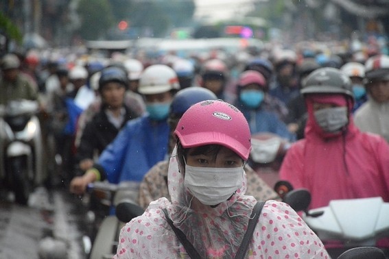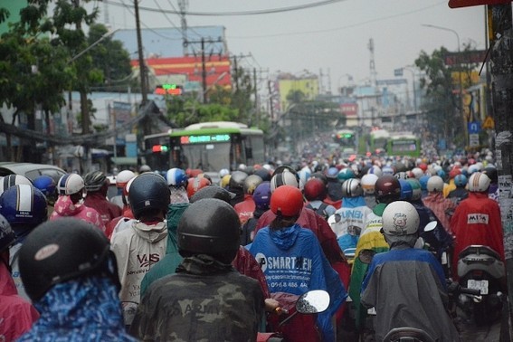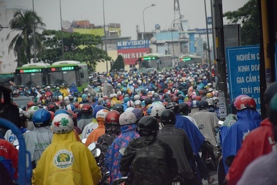 Để tránh kẹt xe nhiều người dân buộc di chuyển lên trên cầu.
