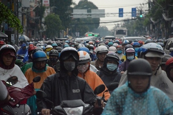 Ghi nhận trên Quốc lộ 13 đoạn trước Bến xe miền Đông, tuyến đường bị ngập, khiến giao thông qua khu vực bị hỗn loạn.