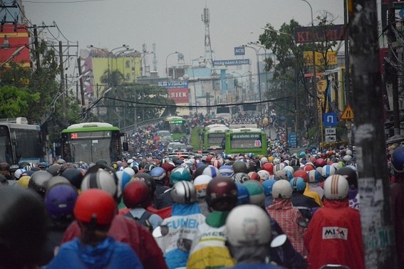 Đoạn trên cầu Chợ Cầu , kẹt xe kinh hoàng, hàng nghìn phương tiện xe máy, xe ô tô, xe buýt không thể nhúc nhích.
