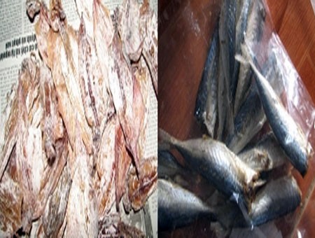 Mẫu cá nục, mực sấy khô có chứa chất Bifenthrin.