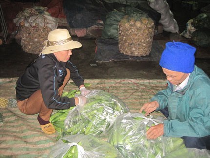 Mười rưỡi đêm, tôi theo xe vợ chồng anh Hồ Văn Lân (44 tuổi) ở xã Tân Sơn, huyện Quỳnh Lưu (Nghệ An) bắt đầu một chuyến hàng như thường lệ của người buôn bán ở chợ Thái Hòa – một trong những chợ đầu mối rau quả đông đúc, nhộn nhịp. Vợ chồng anh Lân quê ở xã Quỳnh Lương, nơi trồng rau nổi tiếng từ trước đến nay trong tỉnh Nghệ An. Năm xưa, những người trong làng di cư lên núi, là xã Tân Sơn bây giờ, mang theo nghề truyền thống của cha ông là trồng rau chạy chợ, rồi chăm chỉ làm ăn, khai hoang vỡ đất, để “có sức người sỏi đá cũng thành cơm”.
