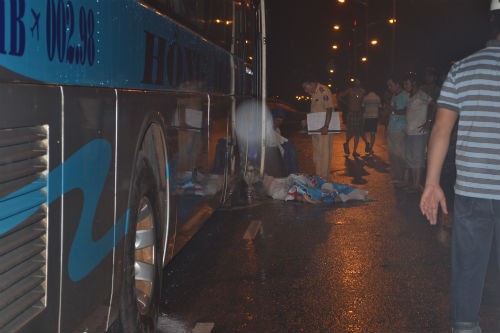 Đúng lúc này, có một chiếc xe khách chạy tới cán ngang qua người và kéo lê đi 15 mét, khiến nạn nhân tử vong tại chỗ.