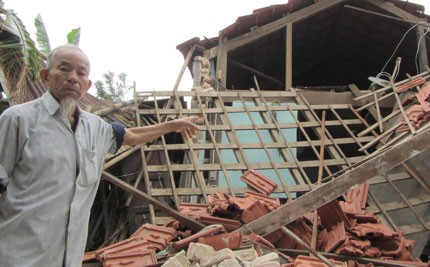Ông Gia có mẹ là Mẹ Việt Nam Anh hùng, vừa được Nhà nước hỗ trợ 15 triệu đồng để lợp lại mái ngói, sửa sang nhà cửa sau trận bão số 14. Trong khi ông vẫn chưa kịp làm gì với số tiền đó thì nay lại phải chịu thêm thiệt hại này. “Vợ chồng già chúng tôi không biết lấy gì để làm lại nhà đây?”, ông Gia gạt nước mắt nói.