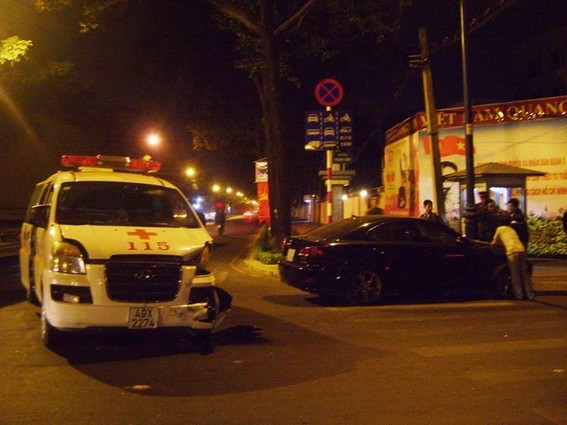 Trên chiếc xe cấp cứu mang biển số 49X2274 từ huyện Lạc Dương tỉnh Lâm Đồng xuống bệnh viện cấp cứu 115 trên đường Sư Vạn Hạnh, (quận 10, TP HCM), anh Đạt lại gặp tai nạn lần thứ 2 tại ngã tư Võ Thị Sáu-Trương Định (quận 3, TP HCM) do một chiếc xe bốn chỗ đâm mạnh vào phần đầu chiếc xe cấp cứu.