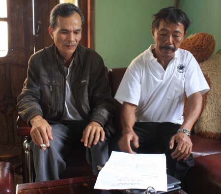 Ông Chim và ông Ân trình bày vụ việc với phóng viên.