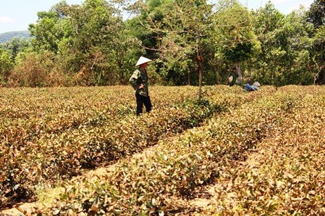 Tại huyện miền núi Hương Khê (Hà Tĩnh), nắng nóng kéo dài đã làm chết khô nhiều diện tích chè của Xí nghiệp chè 20/4 ở xã Hương Trà…