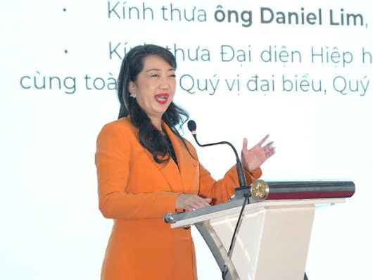 Bà Varaporn Dhamcharee - Tổng Giám đốc RX Tradex Thái Lan và Việt Nam phát biểu tại buổi khai mạc