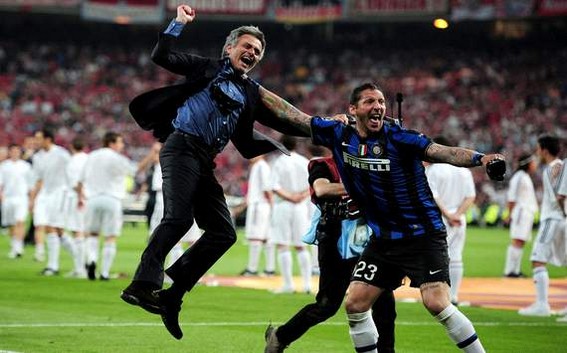 Materazzi (phải) ngày còn thi đấu dưới trướng Mourinho - Ảnh: Getty