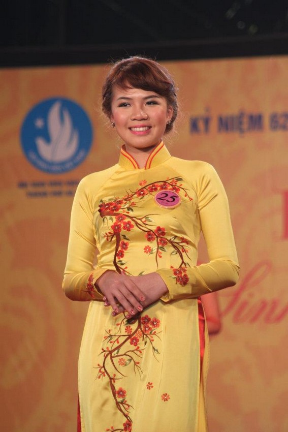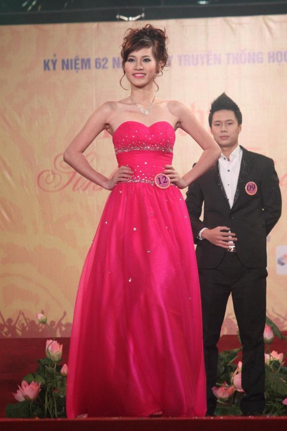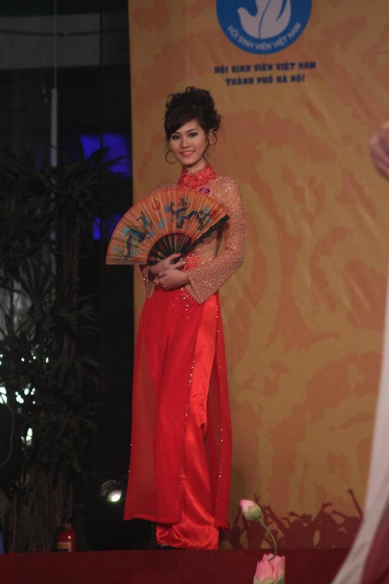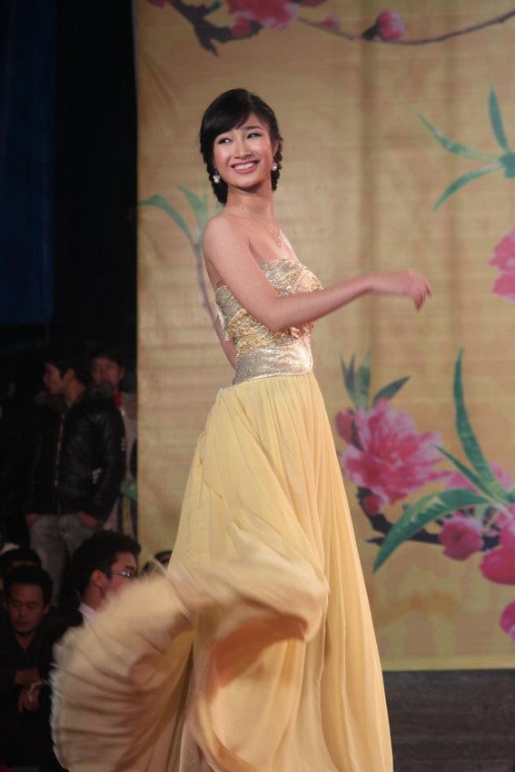Dantin - Mặc cho thời tiết giá lạnh của đêm mùa đông, 10 nữ sinh trong đêm chung kết cuộc thi Sinh viên thủ đô tài năng, thanh lịch 2012 vẫn thỏa sức khoe dáng trong những chiếc áo phông khỏe khoắn, những tà áo dài truyền thống mỏng manh và những bộ đầm lộng lẫy...