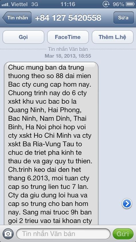 Chị Trần Thị Quyên ở Tây Sơn (Đống Đa, Hà Nội), chủ nhân của số điện thoại 09802xxxx thường xuyên bị quấy nhiễu bởi những tin nhắn kêu gọi, mời chào chơi lô đề, cờ bạc... với nội dung như: "Chúc mừng thuê bao 09802xxxx là thuê bao duy nhất được trường quay Xổ số Miền bắc tặng cầu lô hôm nay. Chắc ăn 100%. Soạn B gửi 6791". Chị Quyên cho biết: Thậm chí nhiều hôm chỉ trong một buổi sáng mà số điện thoại của chị nhận đến cả chục cái tin nhắn mời chơi, tải game với các trò như tiến lên, phỏm, xì tố,…