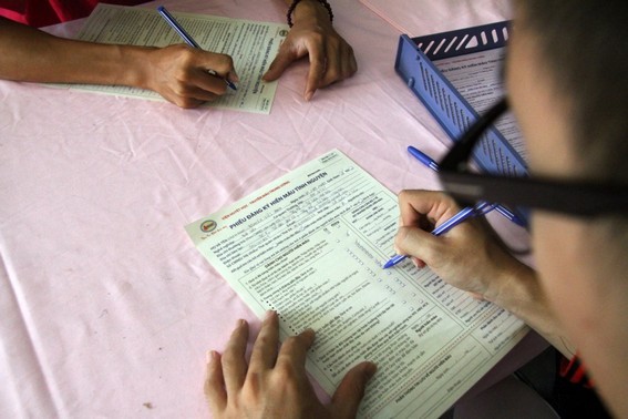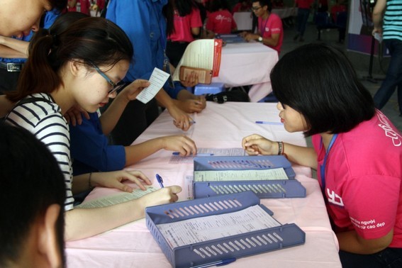Các bạn trẻ đăng ký vào phiếu hiến máu tình nguyện, với mong muốn sẻ chia những giọt máu của mình tới những người bệnh.