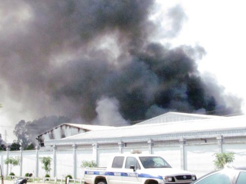 Một số công nhân trực phát hiện khói bốc ra từ kho chứa thành phẩm, chỉ vài vài phút sau, cột khói đã bốc cao ngùn ngụt kèm theo lửa cháy dữ dội.