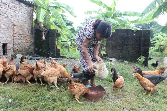 Làng ven đê Phong Phú, xã Hưng Hòa mang vẻ buồn ảm đạm của ngày mưa bão. Ngôi nhà của chị Vương Thị Bàng (SN 1970) nằm khuất sau con đường đất chạy quanh co, chẳng có cổng ngõ. Khi chúng tôi đến, chị đang lui cui sau giếng nước băm rau cho vịt ăn: “ mẹ đi chợ rồi, mình ở nhà dọn dẹp, rồi đến bữa nấu cơm”.