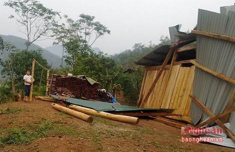 Lốc xoáy và mưa đá khiến nhiều ngôi nhà bị hư hỏng. (Ảnh: Báo Nghệ An)