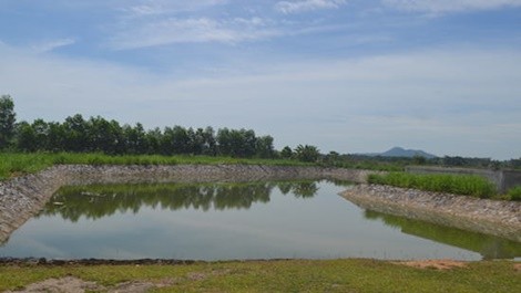 Hồ chứa nước công trình ở xã Diễn Tháp bỏ không từ lâu, chỉ có tấm biển báo bằng gỗ