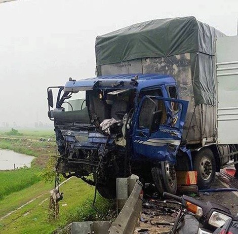 Cú đâm mạnh tài xế xe tải nhỏ tử vong tại chỗ, phần đầu xe bị hư hỏng nặng. Xe ô tô tải 29C-228.84 cũng bị hư hỏng phần đầu, tài xế và phụ xe bị thương nặng.