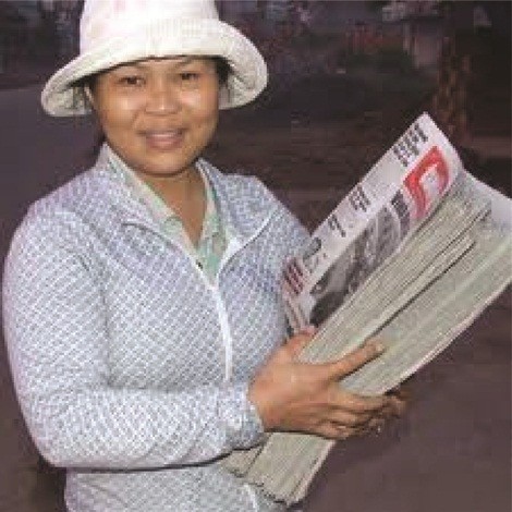 Tôi đã theo chân chị Tuyết, một người bán báo dạo ở khu nhà trọ hẻm Bùi Đình Túy tới “địa bàn” hoạt động của chị ở khu vực Nhà thờ Đức Bà, Q1. Chị Tuyết quê ở Sơn Tịnh, Quảng Ngãi cùng với chồng và hai đứa con vào Sài Gòn “lập nghiệp” vì ở quê làm ruộng không đủ ăn. Chồng chị, làm công nhân đào đường, hễ có công trình thì có việc làm, không có công trình thì coi như thất nghiệp. Những ngày có công việc, chồng chị gần như sống trong “lô cốt” của công trình đào đường, ít khi về nhà. Một buổi chị Tuyết đi bán báo dạo, một buổi ở nhà chăm sóc con cái. Là một phụ nữ gần 40 tuổi, do cuộc sống lam lũ ở quê rồi vào Sài Gòn bán báo dạo dầm mưa dãi nắng nên trông chị già trước tuổi nhưng nhan sắc một thời thiếu nữ vẫn còn đọng lại trong nụ cười, ánh mắt dù chị ít khi cười, còn ánh mắt luôn có vẻ u ẩn.