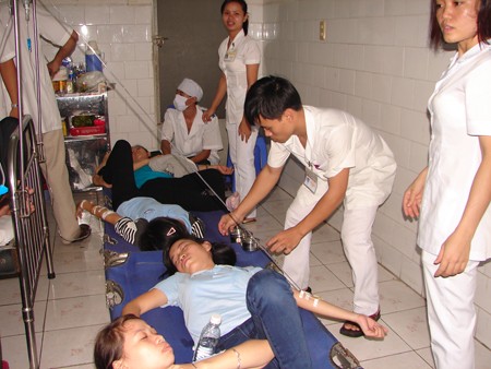 Công nhân ở thị xã Dĩ An (Bình Dương) bị ngộ độc thực phẩm nằm chen kín các phòng ở bệnh viện