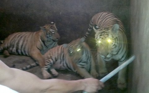 Những con hổ được nuôi nhốt tỏ ra khá hiền lành so với đồng loại của nó trong tự nhiên. Người lạ mặt có thể đùa, thậm chí... nhổ râu.