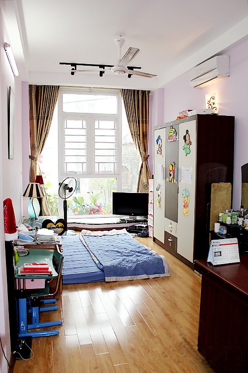 Bước lên tầng ba để tham quan phòng riêng của trẻ nhỏ, chúng tôi nhận thấy chút bừa bộn đặc trưng của phòng trẻ em, tuy nhiên căn phòng này khá thoáng đãng.